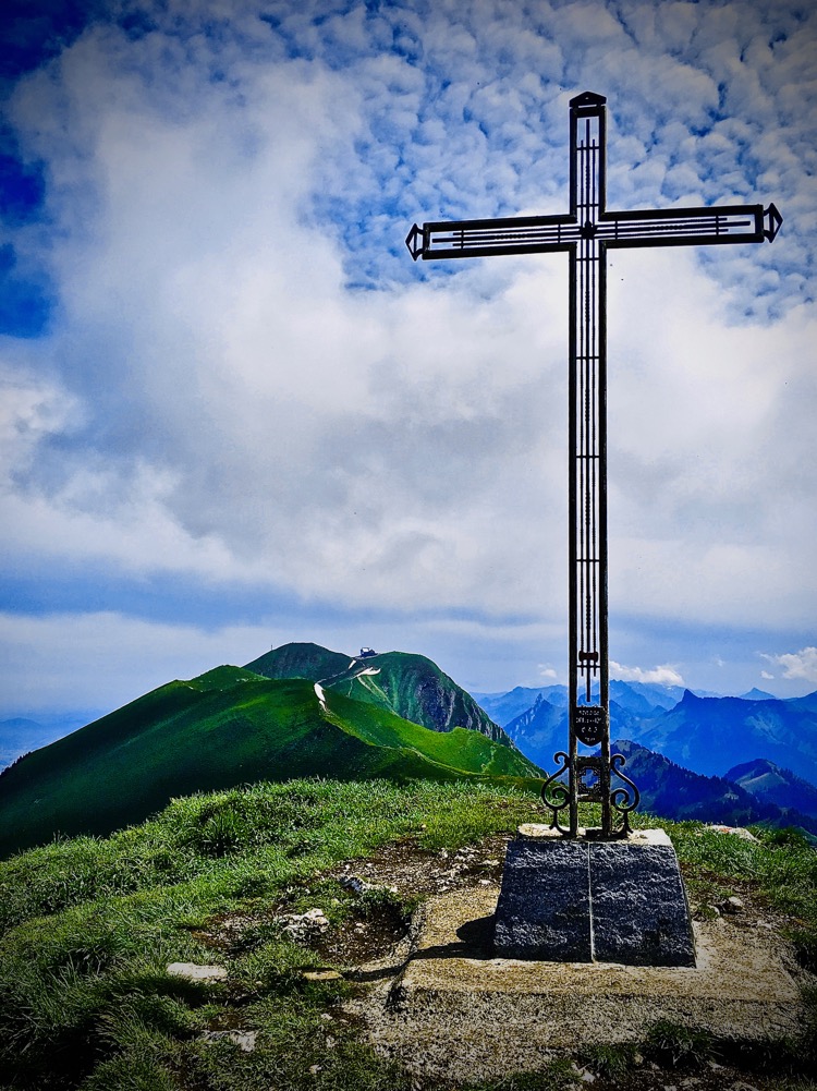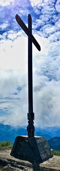Pour ma part, je vois moins le symbole religieux que le signe que je suis arrivé au sommet. En plus, ça satisfait mon petit côté collectionneur : hop, une croix de plus ! Et puis ça fait des belles photos.
