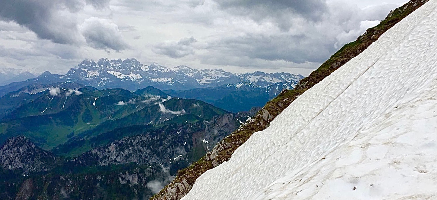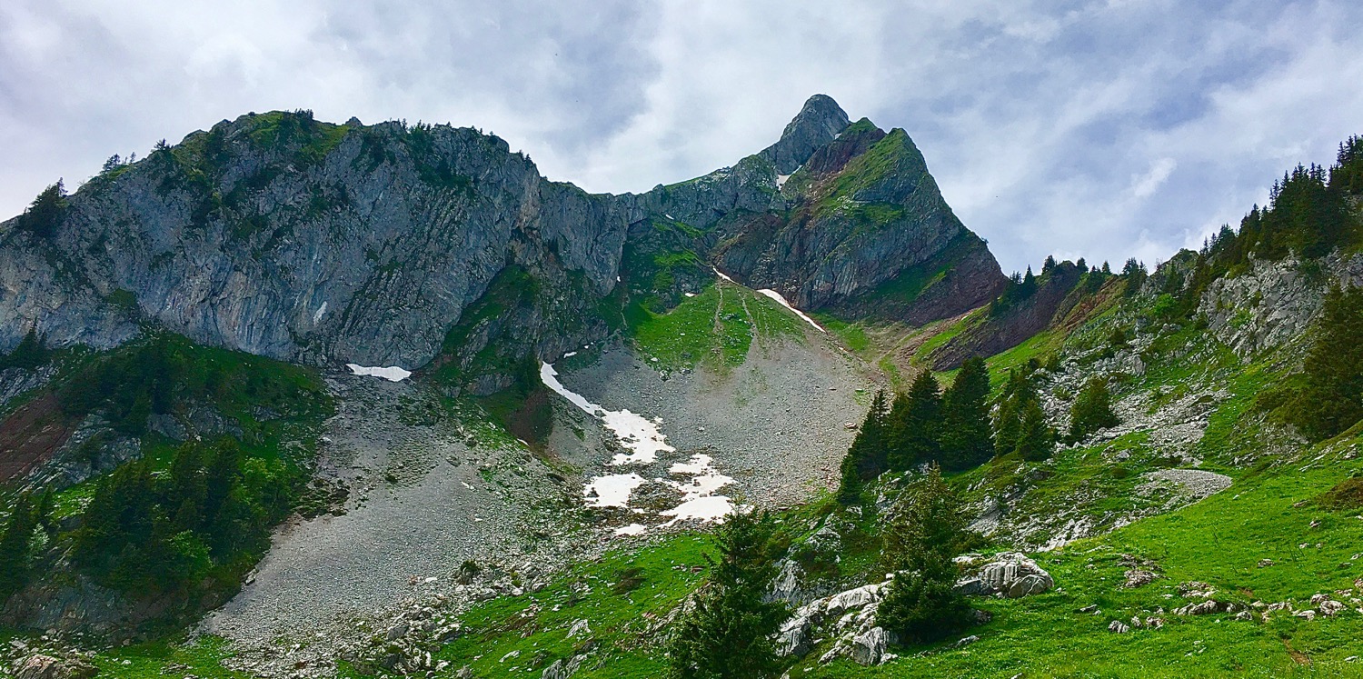 Le sommet n’est plus qu’une formalité. Il suffit de monter. La vue y est magnifique, aussi bien d’un côté que de l’autre. On peut voir la vallée du Rhône, les Dents du Midi, les Cornettes de Bise, le Mont Gardy. Enfin, quand le temps l’autorise…